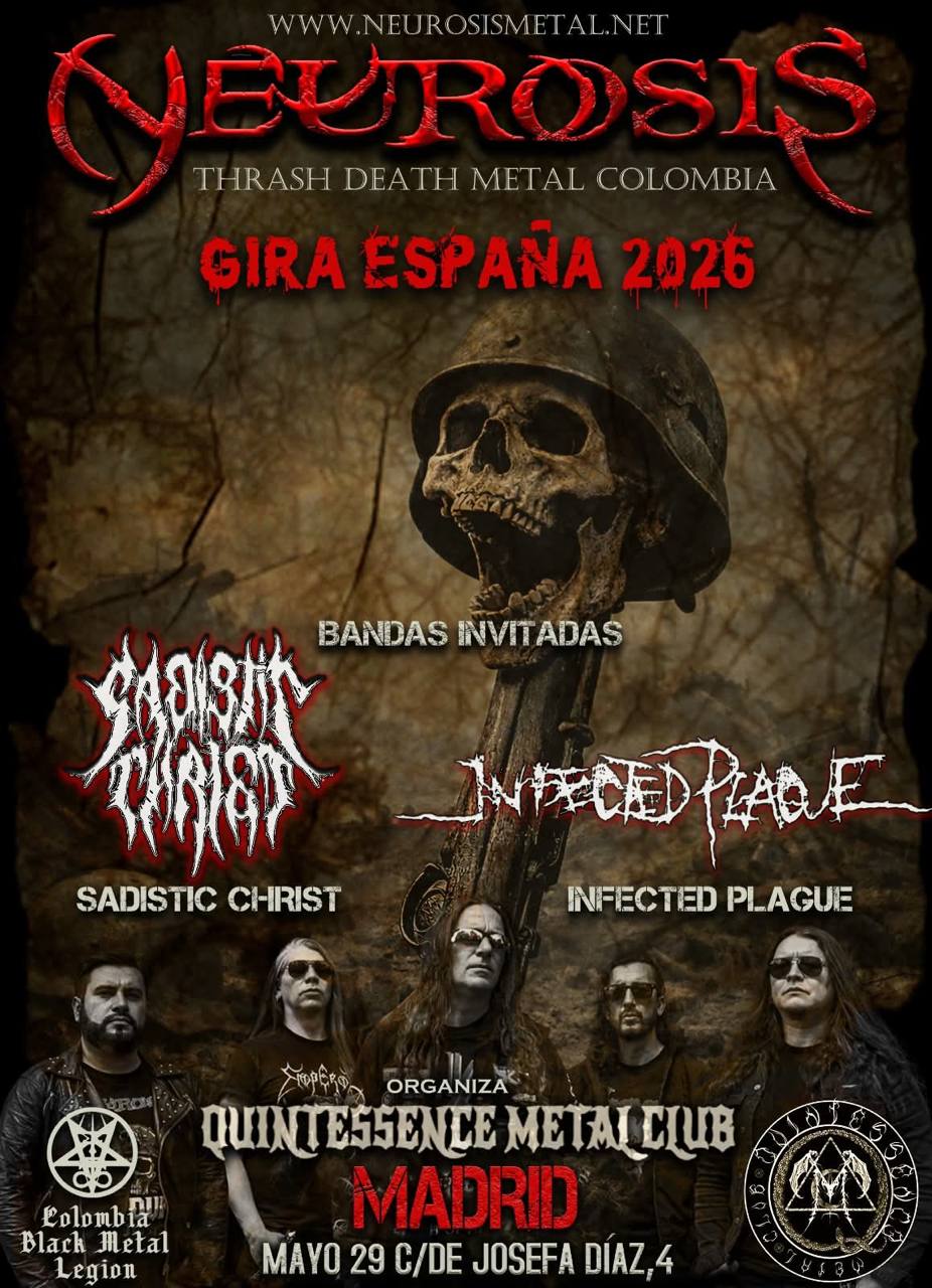 Sadistic Christ actuará el 29 de mayo de 2026 en el Quintessence Metal Club de Madrid junto a Neurosis (Colombia) en su Gira España 2026. Entradas ya disponibles para uno de los conciertos de metal extremo más esperados del año.